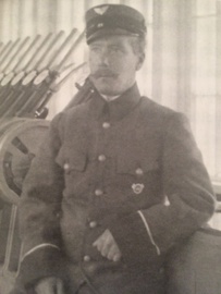 ![]() Antti Nuppola palveli vaihdemiehenä asetinlaite nro 1 hoitajana Viipurissa. Vuosina 1933-34 hän palveli Valkjärven asemalla. Kuva kirjasta Torvisoittoa Elias Nuppolan johdolla/Marja-Leena Nurkka |