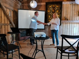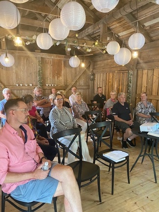 Sukuseuramme kesätapaaminen järjestettiin tänä vuonna Pulsan Asemalla Lappeenrannassa. Aiheena oli isälinjaisten DNA-testien käyttö sukututkimuksen apuna. Vieraanamme oli sukututkija ja Geni.com-koordinaattori EERIK YRJÖLÄ Porvoosta. Eerik on luumäkeläistä Tynyksen sukua. Hän selvitti meille, mitä tietoa DNA-testien vastauksista voi saada ja miten niitä tulkitaan. Asiaosuuden jälkeen siirryimme juhlataloon nauttimaan lounasta ja seurustelemaan. Osallistujia oli parisenkymmentä. |