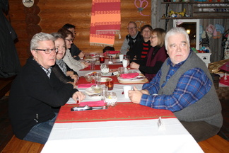 ![]() Seuran jäseniä pikkujoululounaalla Kahvi-Pakarissa Luumäellä 2013 |