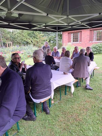 Aluksi juotiin tulokahvit, sitten porukka hajaantui pieniin ryhmiin tutustumaan alueeseen. Päivän mittaan muodostui keskusteluryhmiä, joissa muisteltiin menneitä ja kertoiltiin nykypäivän kuulumisia. Klo 14 oli yhteinen ruokailu , minkä jälkeen pikkuhiljaa jokainen alkoi tehdä kotiinlähtöä.