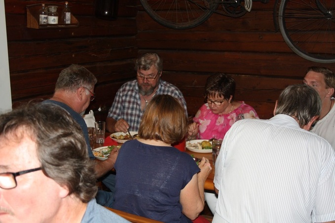 Kesätapaamiseen osallistui 20 henkeä. Kohteenamme oli jälleen Kotkaniemi, ja sen