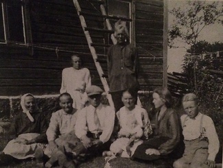 Haimilassa istumassa vasemmalta Eeva-Stiina Hämäläinen, Maija-Leena Puranen (o.s. Nuppola), Eino ja Elvi Säkäjärvi, Ida ja Väinö Sinisalo. Seisomassa Hilma Puranen ja Elias Puranen.