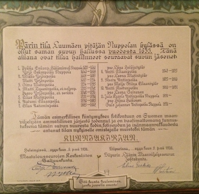 ![]() Pärin tilan sukutauku vuodelta 1939. |